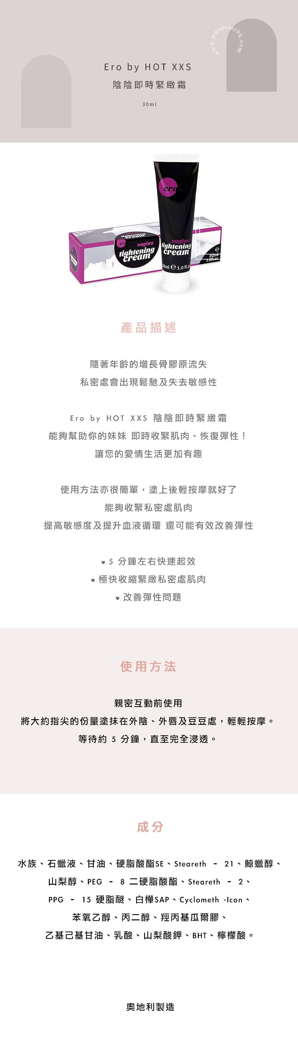 德国HOT 缩阴膏 女用私处紧致凝胶 30ml